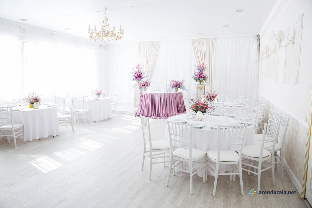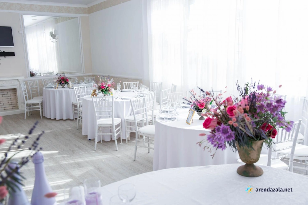 В банкетном зале отмечается высокий уровень обслуживания, профессионализм персонала и внимательность менеджеров к пожеланиям гостей. Светлый и просторный зал, украшенный зеркалами, создает ощущение торжественной атмосферы. На территории расположено живописное озеро, предоставляющее прекрасные виды для фотосессии. Гостям особенно запомнилось вкусное и красиво оформленное блюдо "салат охотничий". Помимо качественного обслуживания, посетители высоко оценили дополнительные услуги, такие как предоставление номеров, бассейна и кенди-бара.