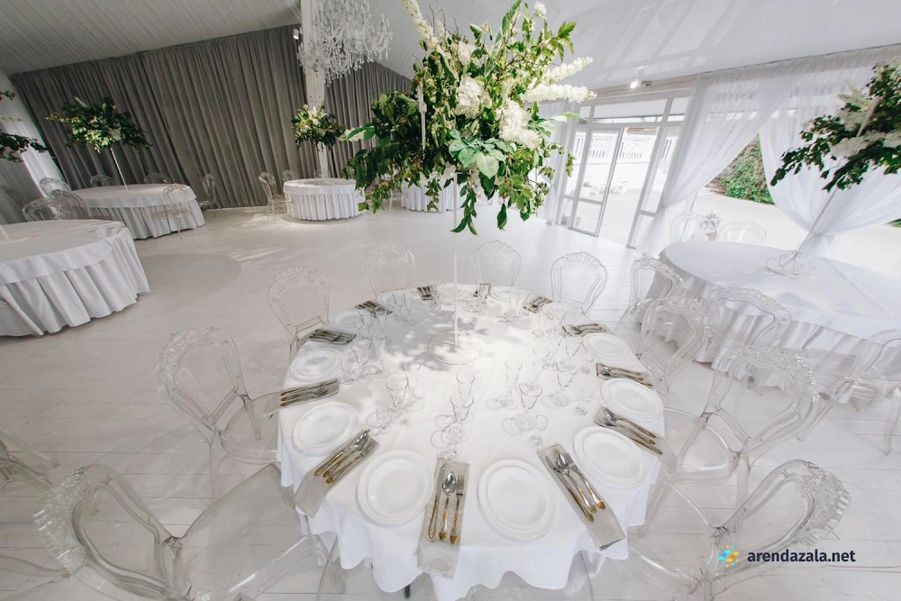 В банкетном зале отмечается высокий уровень обслуживания, профессионализм персонала и внимательность менеджеров к пожеланиям гостей. Светлый и просторный зал, украшенный зеркалами, создает ощущение торжественной атмосферы. На территории расположено живописное озеро, предоставляющее прекрасные виды для фотосессии. Гостям особенно запомнилось вкусное и красиво оформленное блюдо "салат охотничий". Помимо качественного обслуживания, посетители высоко оценили дополнительные услуги, такие как предоставление номеров, бассейна и кенди-бара.