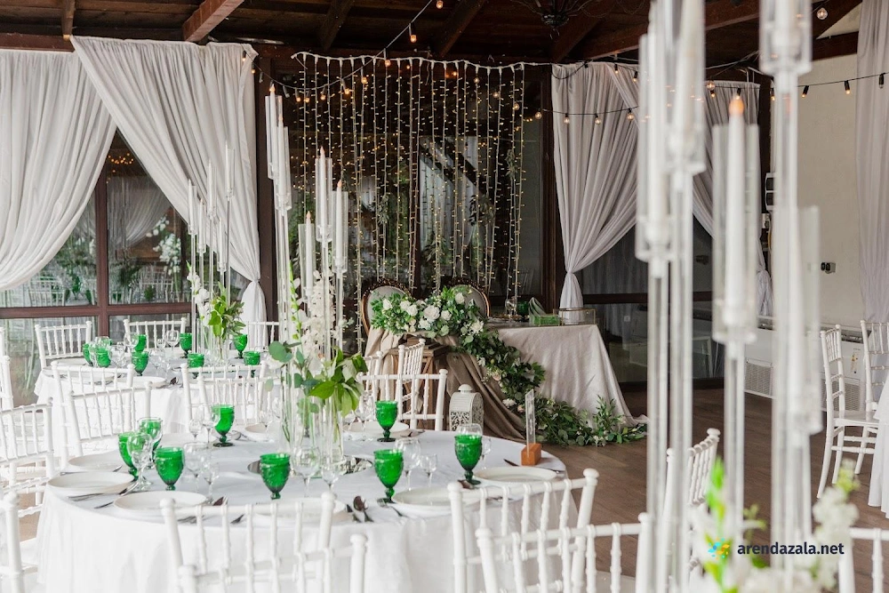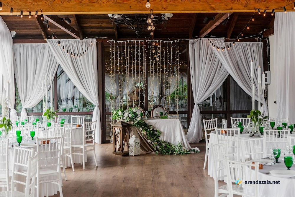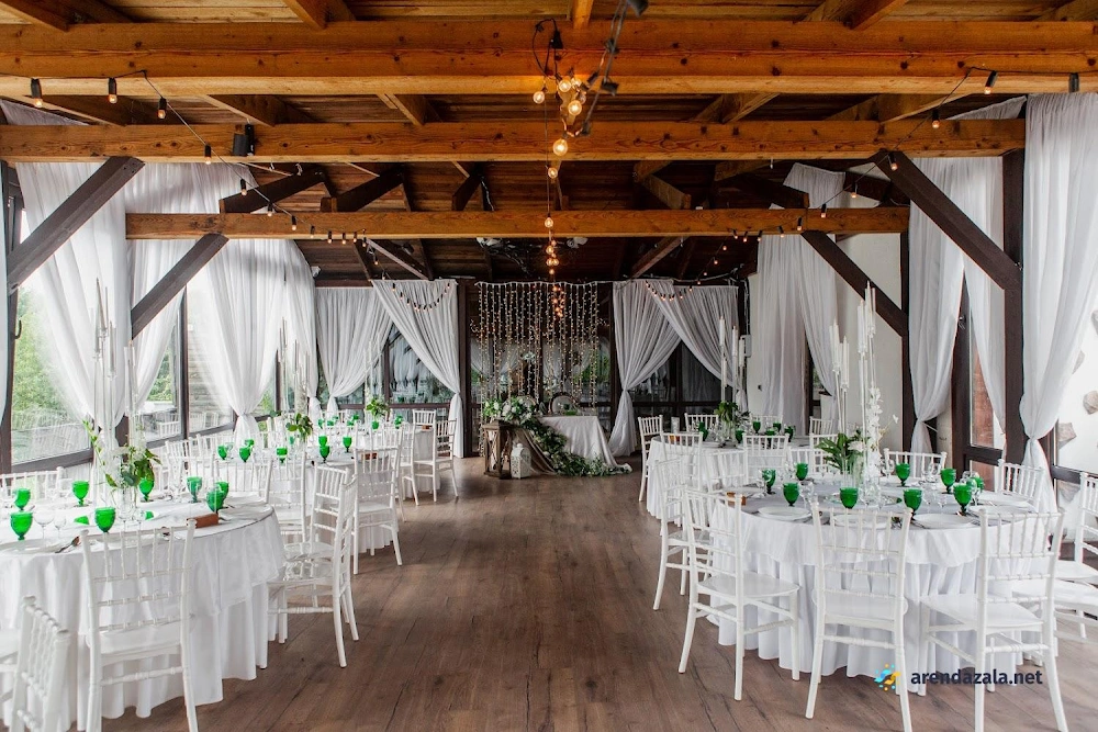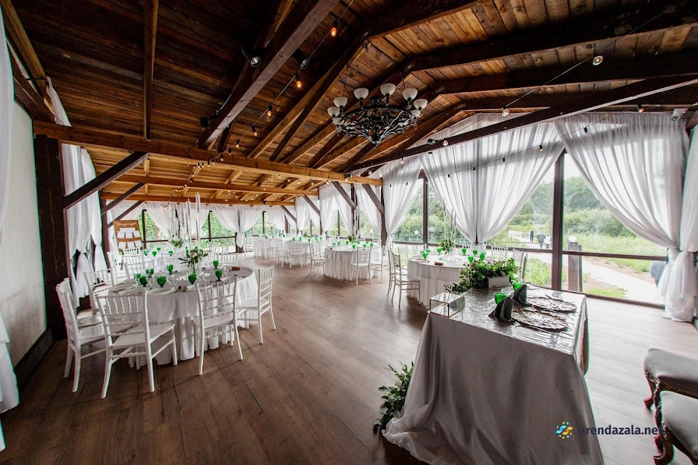 В банкетном зале отмечается высокий уровень обслуживания, профессионализм персонала и внимательность менеджеров к пожеланиям гостей. Светлый и просторный зал, украшенный зеркалами, создает ощущение торжественной атмосферы. На территории расположено живописное озеро, предоставляющее прекрасные виды для фотосессии. Гостям особенно запомнилось вкусное и красиво оформленное блюдо "салат охотничий". Помимо качественного обслуживания, посетители высоко оценили дополнительные услуги, такие как предоставление номеров, бассейна и кенди-бара.