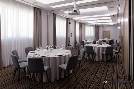 Зал "Премиум" расположен в живописном лесопарке, окруженном тихой природной зоной с ухоженными дорожками и скамейками для прогулок. Посетителей ждет уютная атмосфера, современное оборудование и высококлассное обслуживание вежливого персонала. Концертный зал вместительностью до 500 человек идеально подходит для проведения различных мероприятий. На территории также находится просторная столовая, где подают разнообразные блюда с учетом пожеланий гостей, а также бар, магазин и аптека для удобства посетителей.