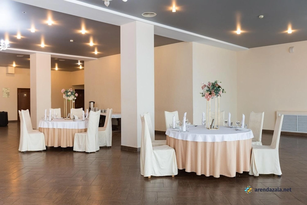В уютном загородном комплексе расположен просторный и оригинально оформленный зал для проведения торжественных мероприятий. Гостей ждет радушный прием вежливого персонала, вкусные домашние блюда и возможность провести время на свежем воздухе. После торжества можно отдохнуть в чистых и ухоженных номерах отеля, а также воспользоваться большой парковкой для автомобилей. Зал оборудован всем необходимым для комфортного праздника: установкой для музыкального сопровождения, удобной зоной для танцев и просторной мангальной площадкой на открытом воздухе.