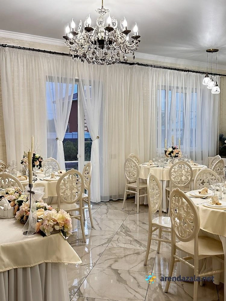 Зал расположен в уютном и живописном месте, окруженном природой, что позволяет отдохнуть от городской суеты. Интерьер выполнен со вкусом и изысканностью, создавая атмосферу роскоши и величия. Опытные повара предлагают разнообразное меню с изысканными блюдами высокого качества, которые не оставят равнодушными даже самых взыскательных гурманов. Внимательный и отзывчивый персонал обеспечивает безупречный сервис, создавая ощущение гостеприимства и комфорта. В зале проводятся различные торжественные мероприятия, такие как свадьбы и банкеты, которые остаются в памяти гостей приятными воспоминаниями.